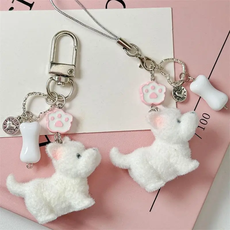 2. Unique design: The keychain pendant is inspired by the rare West Highland White Terrier. The flocking process makes it more realistic and three-dimensional, which is cute and unique.