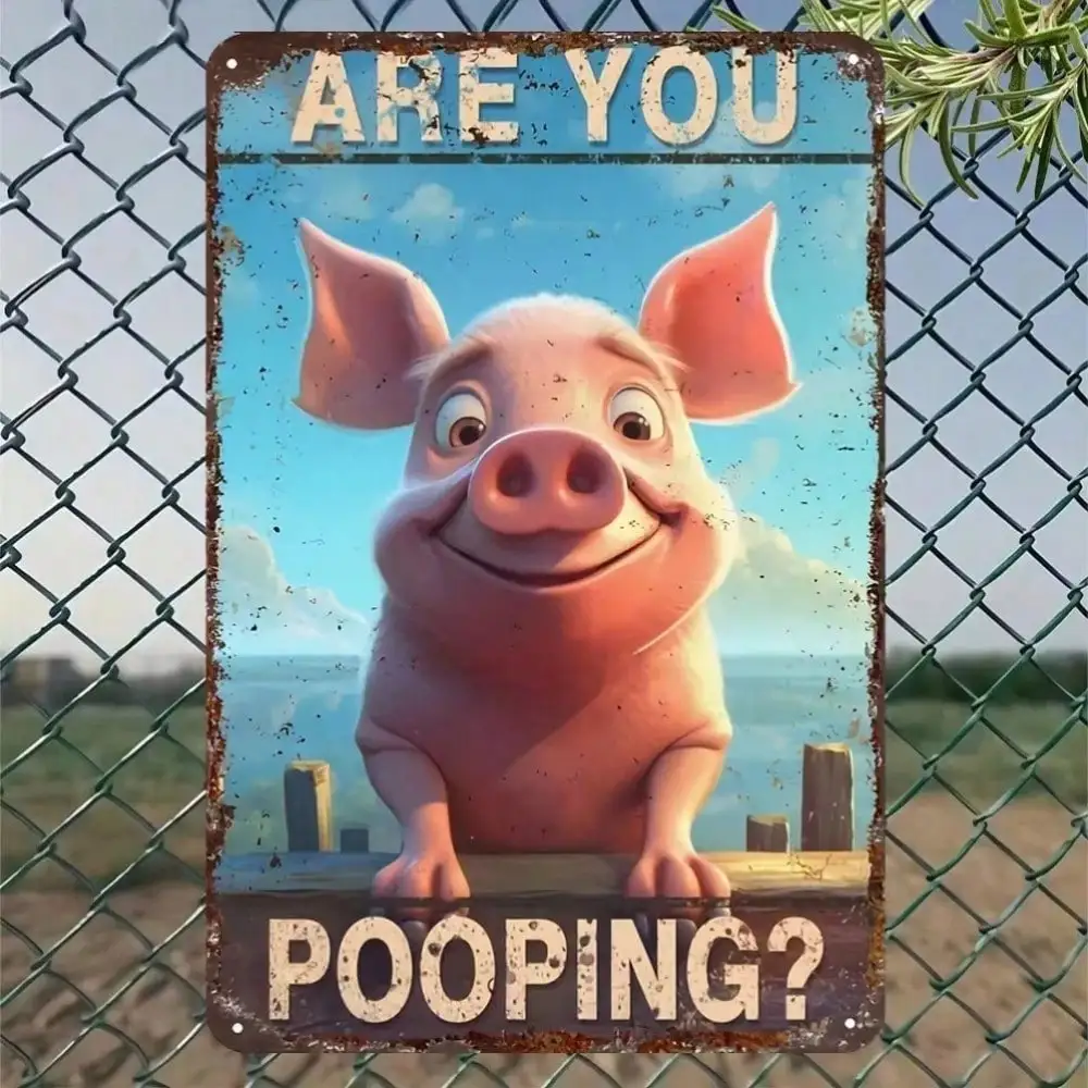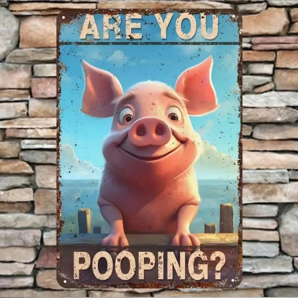 Funny Pig Bathroom Tin Sign
