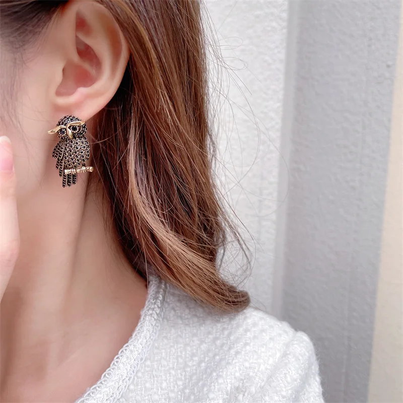 Bilincolor Fashion Bird Black Owl Earring for Women