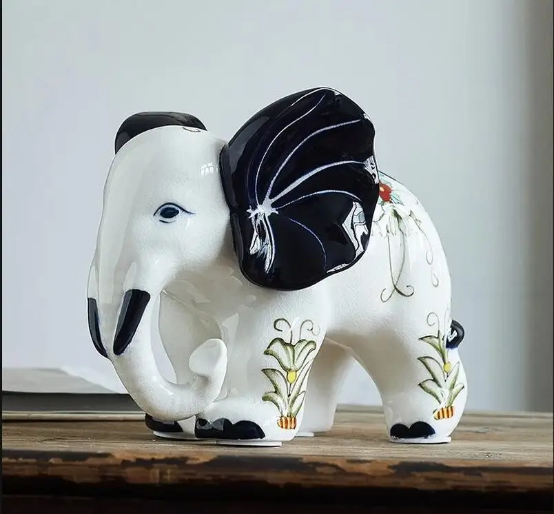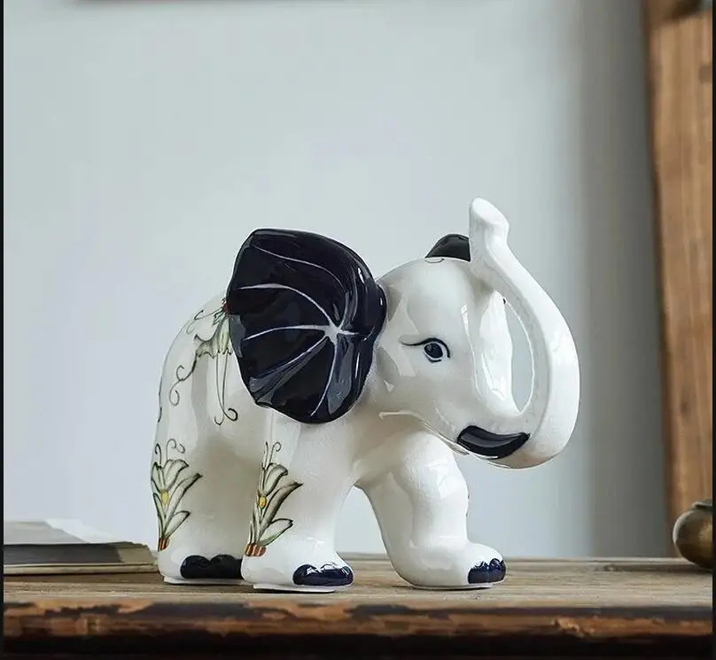 Title: blue and white elephant ornament Ceramic crafts animal decorations home accessories statuette knickknacks Figurines statue Material: Ceramic