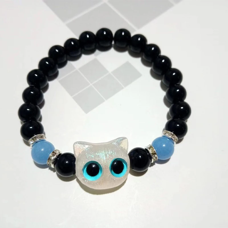 Cute Cartoon Black White Cat Necklace Bracelet For Women Men Glow In The Dark Couple Jewelry Gifts