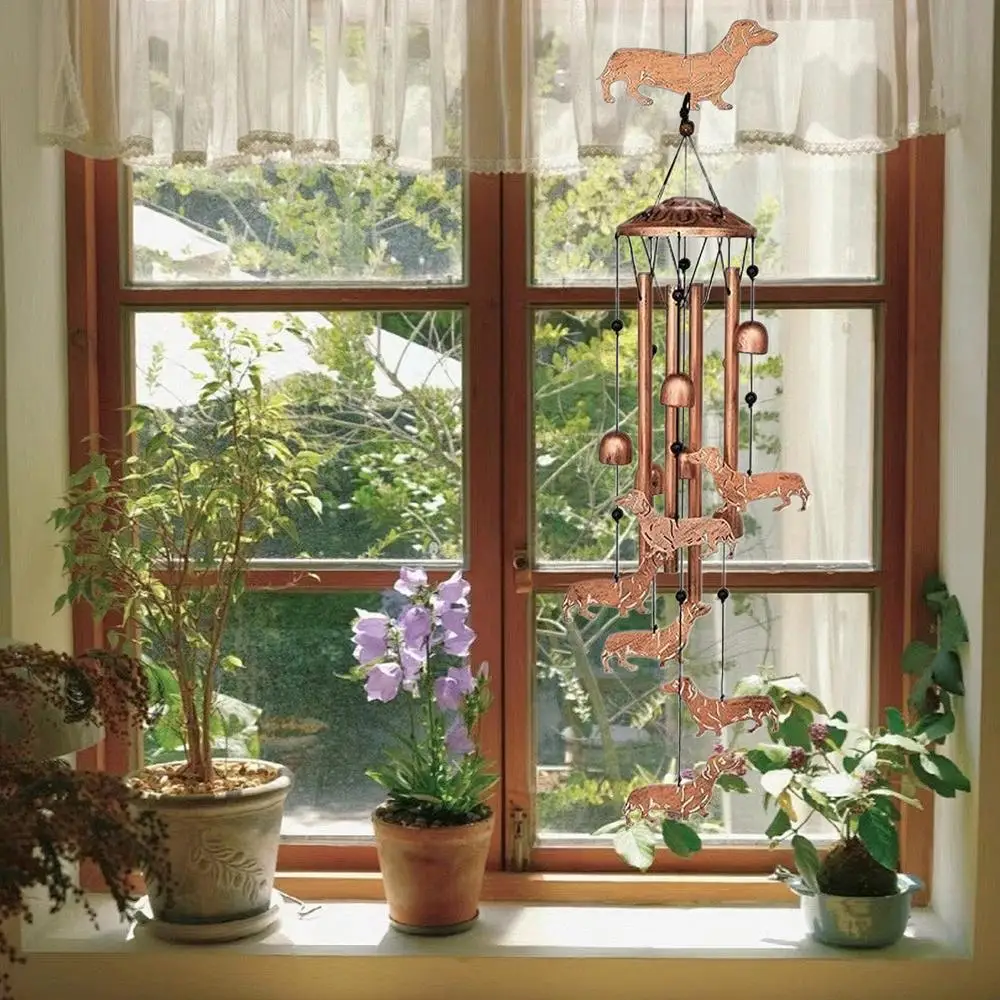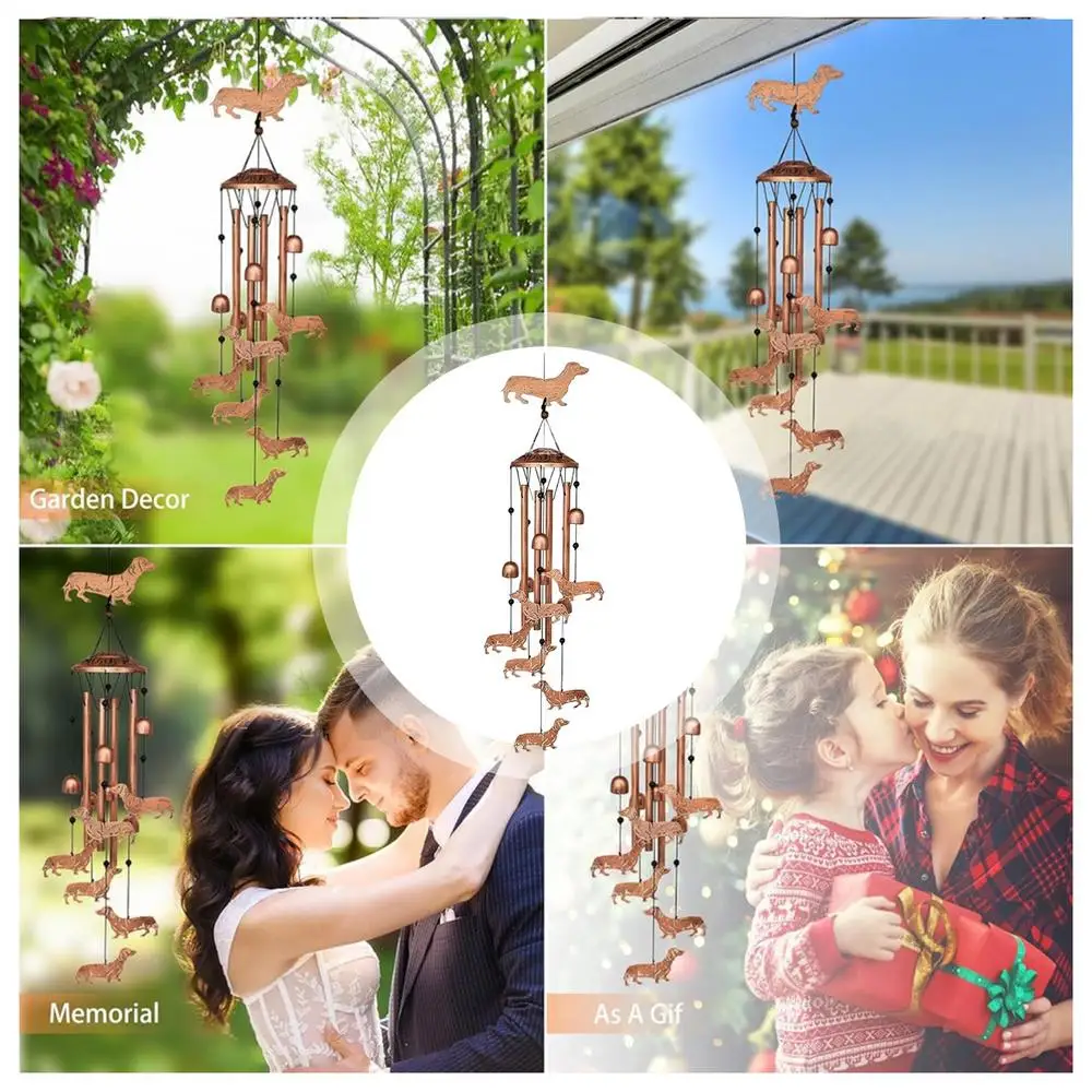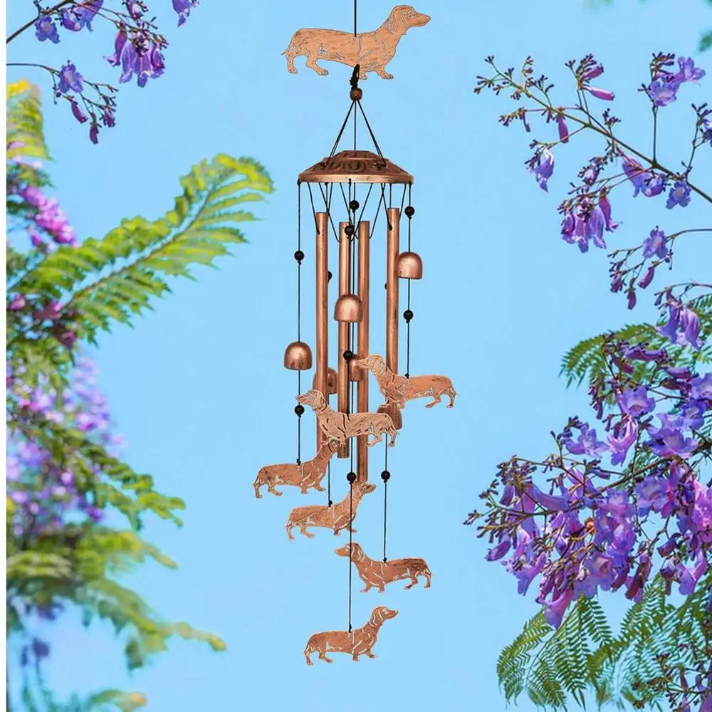 1.Graceful Design: Experience the beauty of vintage-style decor with our dachshund wind chime. Its elaborate design and graceful tones create a unique addition to any outdoor space, bringing a touch of whimsical charm to your garden2.Soothing Melodic Tones: When the breeze blows over the dog windchimes outdoors, pushing the tube to resonate, you will hear a deep tone that's more crisp and pleasing to the ear