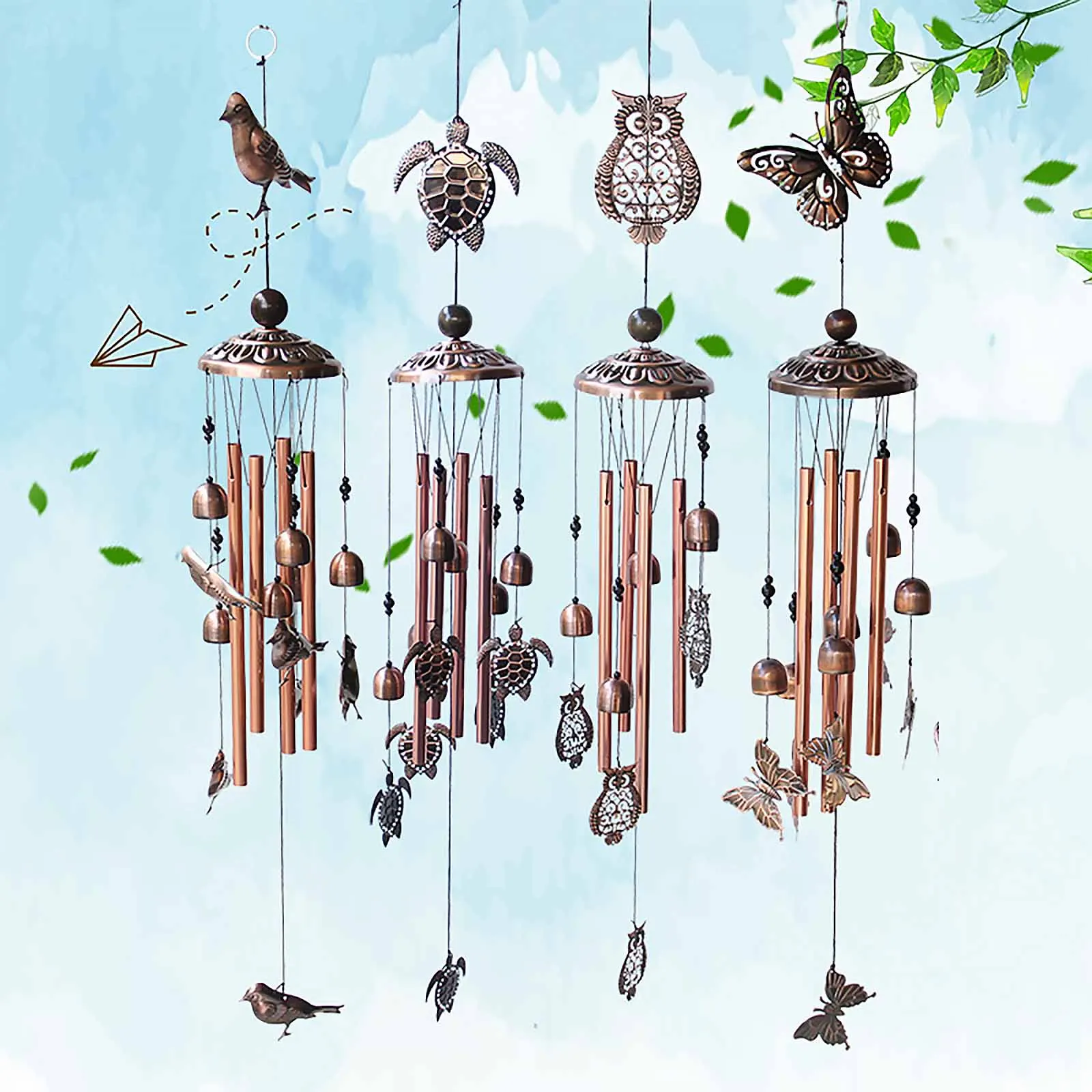 Animal Wind Chime Outdoor, Waterproof, Iron Art Wind Bell Tubes, Hanging Pendant Ornament for Home, Patio, Porch, Garden, Yard, Windows, Tree Decoration